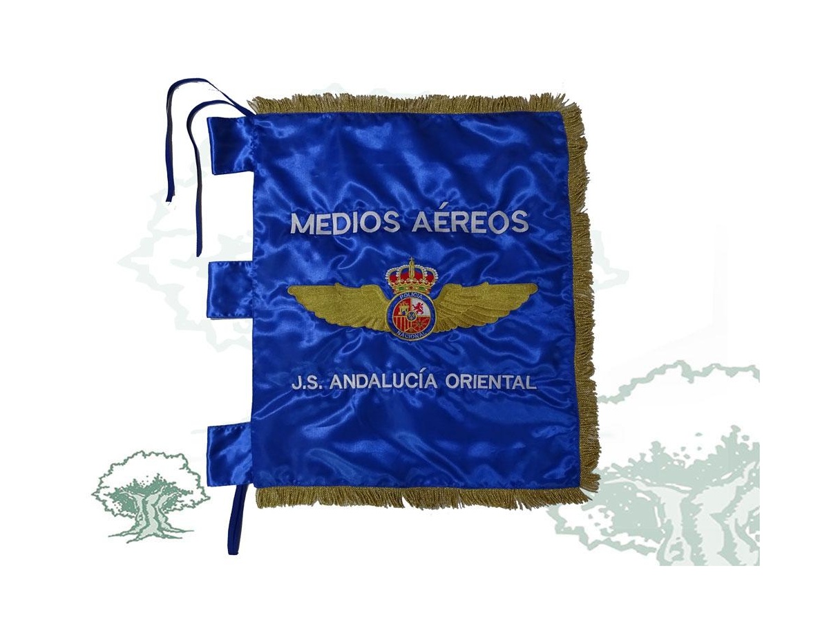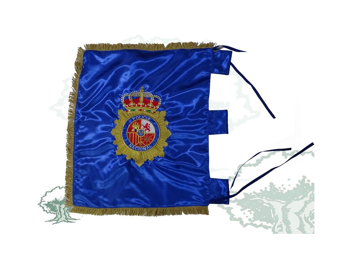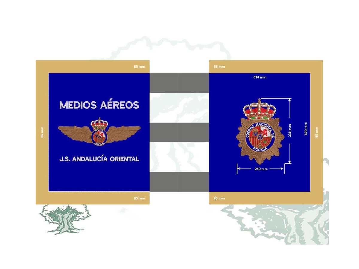 Bordado a doble cara con tela de raso especial y en hilos de oro, según indica la normativa, con estructura general única, forma rectangular, de 600 milimetros de vaina por 65 milimetros de vuelo con flecos dorados.