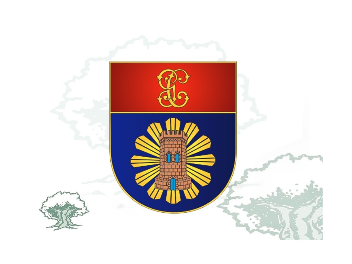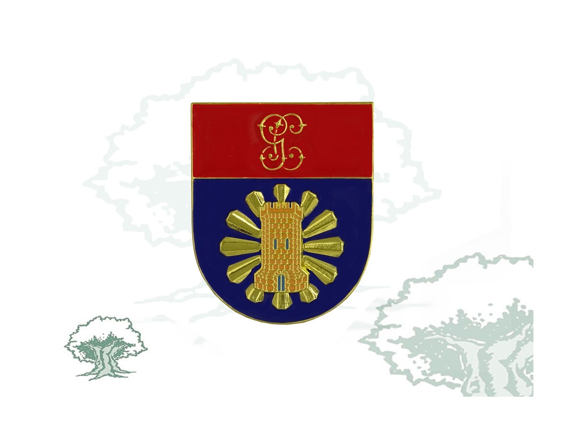 Escudo español cuadrilongo de 30x25 milímetros fileteado de oro. En campo de azur, un sol formado por doce haces de tres rayos dorados cada uno y sobre éste una torre de vigilancia. El jefe de GULES cargado con las letras G y C de oro entrelazadas.