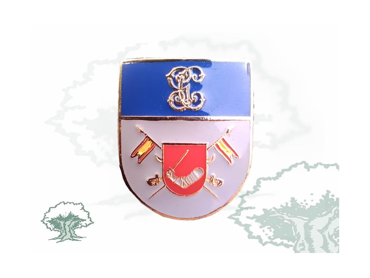 Escudo español cuadrilongo de 30x25 milímetros fileteado de oro. En campo de azur, un sol formado por doce haces de tres rayos dorados cada uno y sobre éste una torre de vigilancia. El jefe de GULES cargado con las letras G y C de oro entrelazadas.