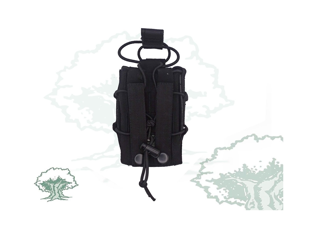 Con dos tiras de anclaje Molle con botón de cierre metálico