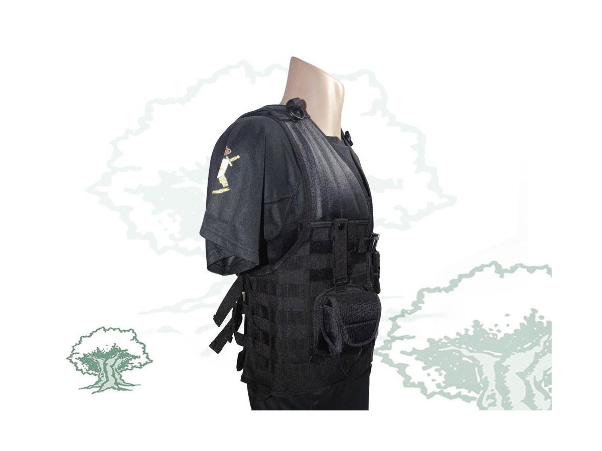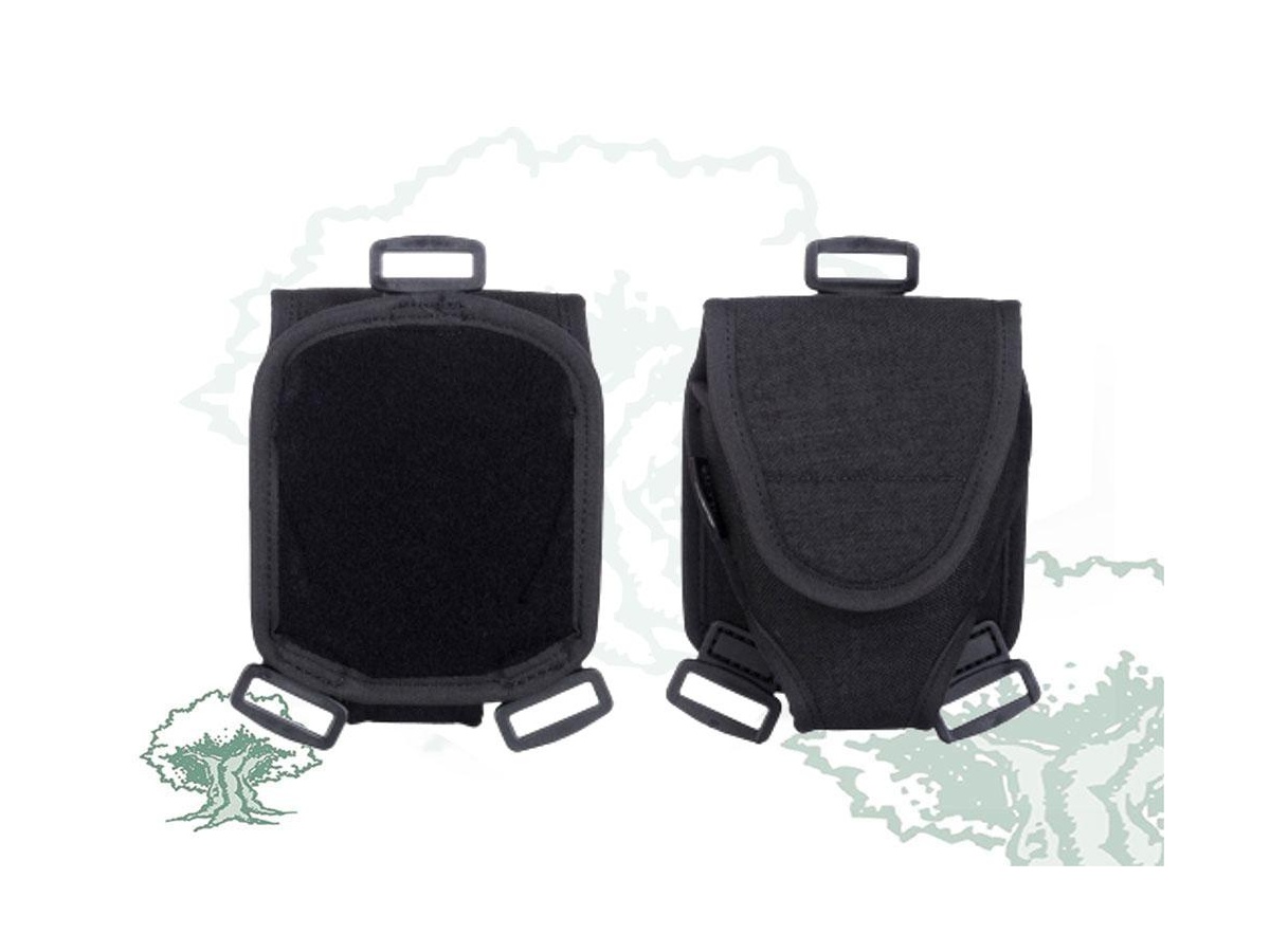 Cuenta con 3 zonas de anclaje, dos inferiores y una superior en las cuales pueden colocarse trabillas y ser utilizadas en cualquier chaleco MOLLE.