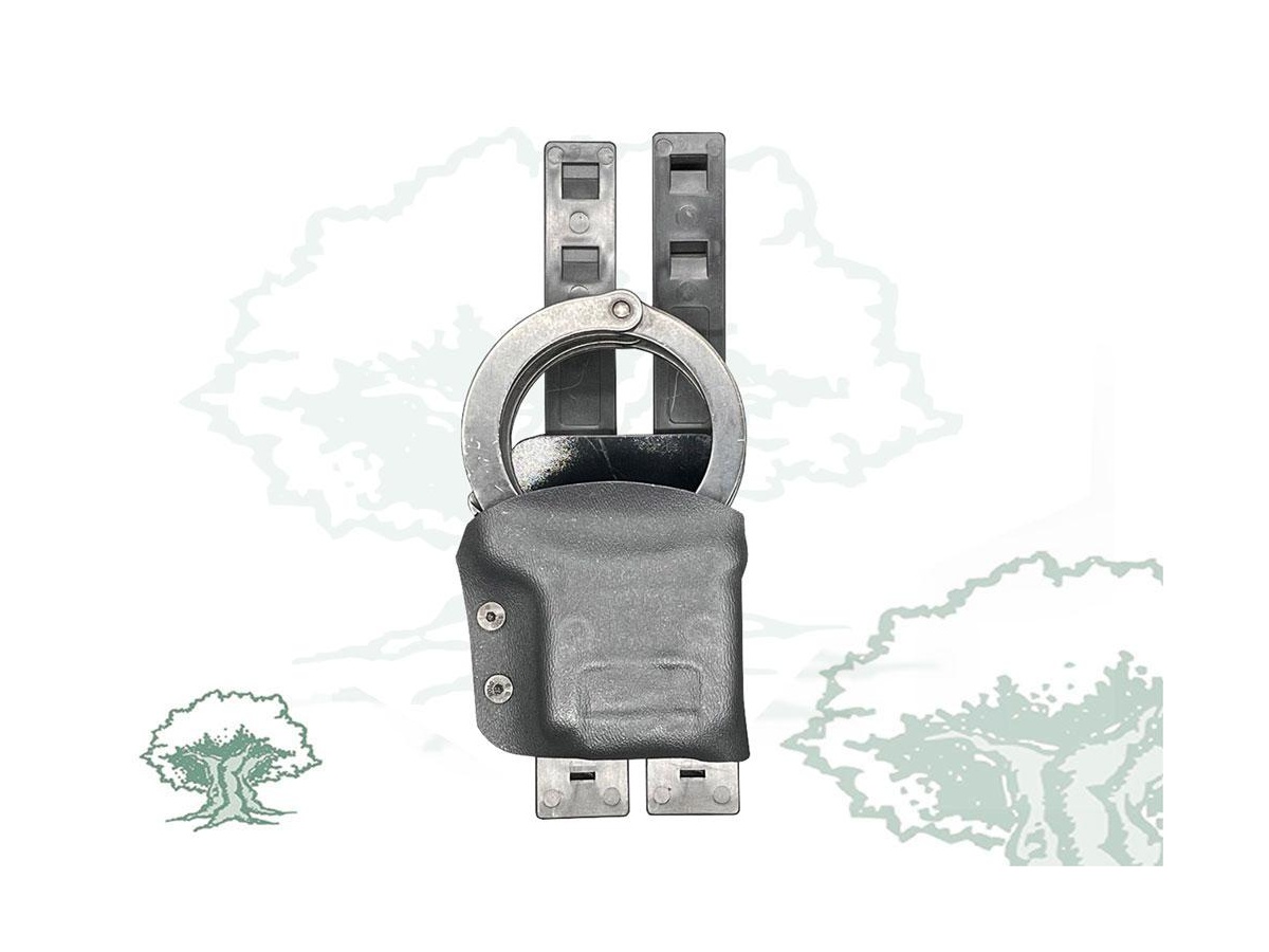 - Funda de grillete exterior de Kydex con soporte malice clip para conexión a chaleco con sistema Molle. Su principal ventaja es que queda alto sobre la línea del cinturón, impidiendo que se nos clave al sentarnos, también dispone de tornillos de ajuste de presión