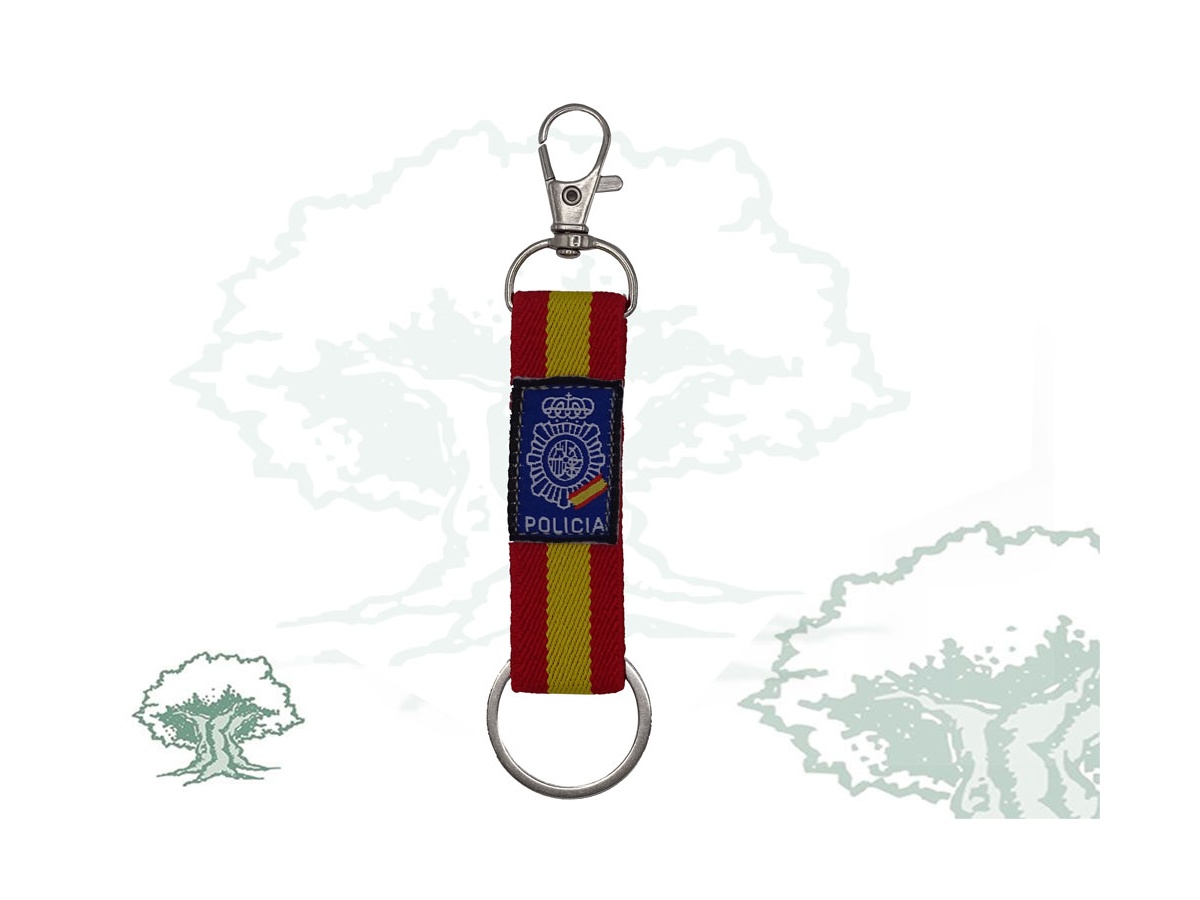Llavero de cinta elástica España con argolla metálica y mosquetón.