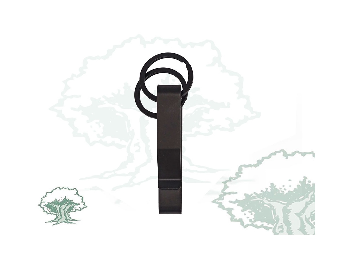 Mosquetón táctico policial para llevar en el cinturón de servicio. Gracias a su diseño, puede usarse fácilmente con una sola mano.