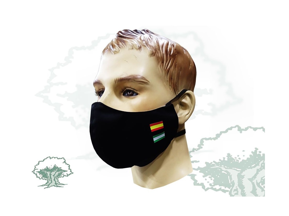En color negro con bandera de España y Andalucía.