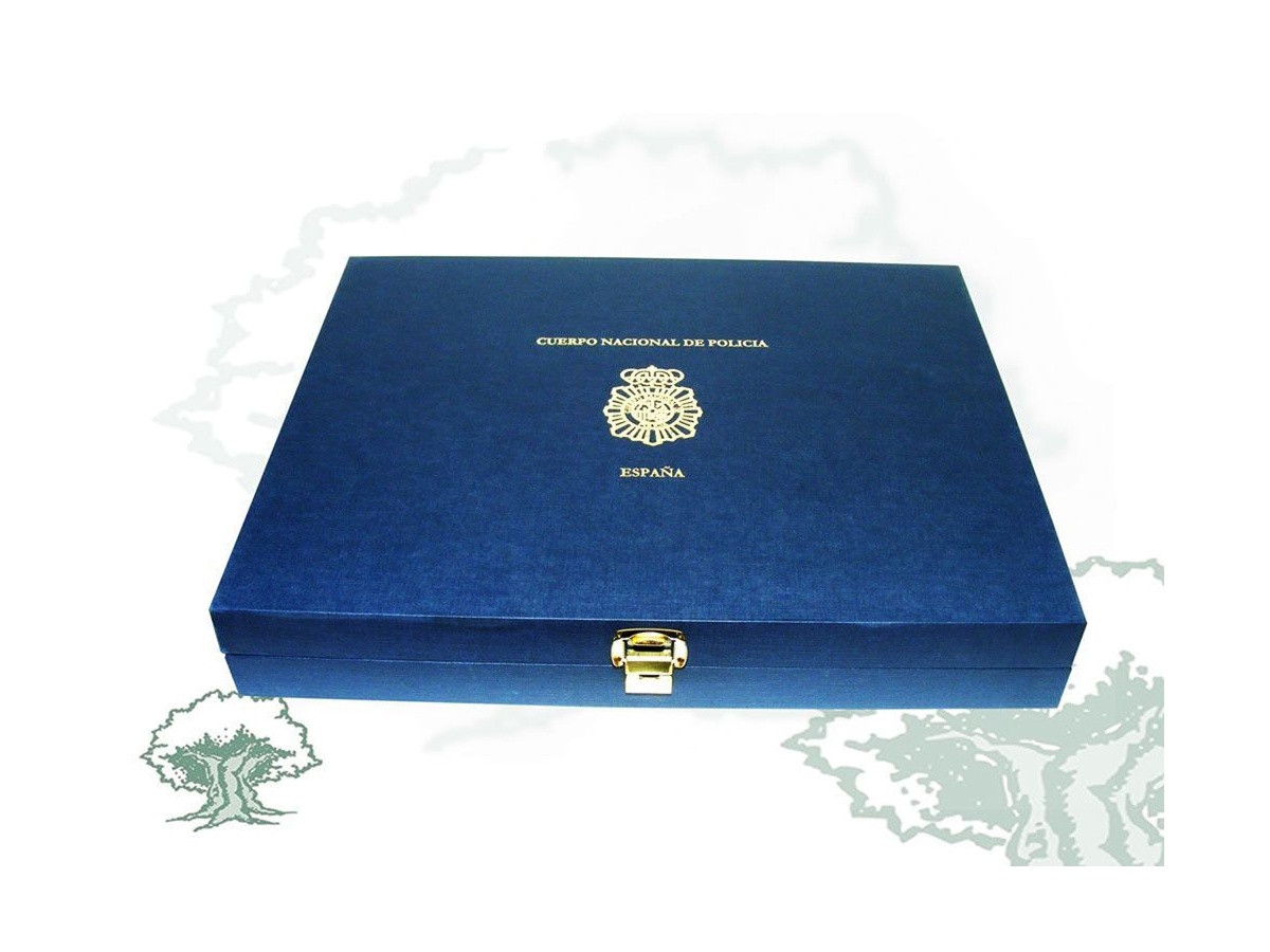 Estuche azul con emblema Cuerpo Nacional de Policía en dorado incluído.