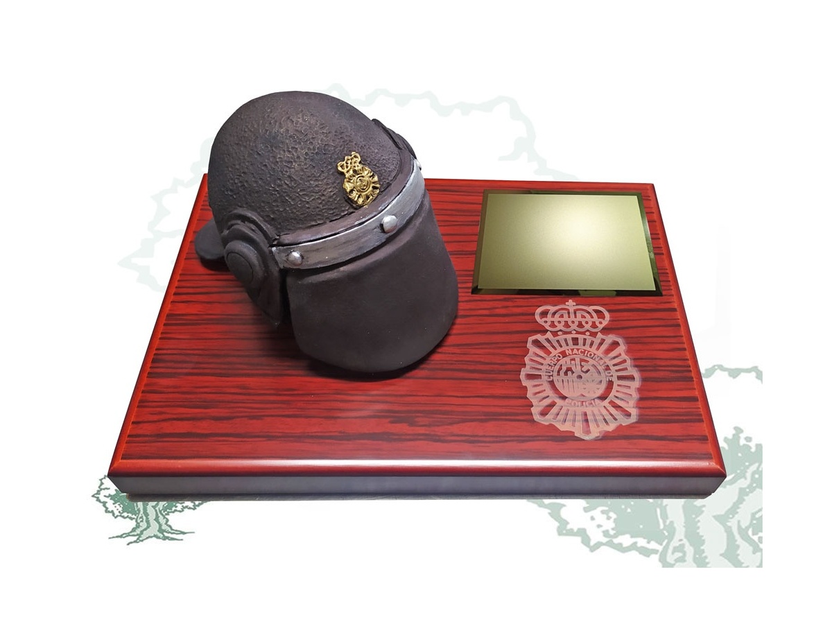 Casco UIP Policía Nacional decorado a mano de sobremesa