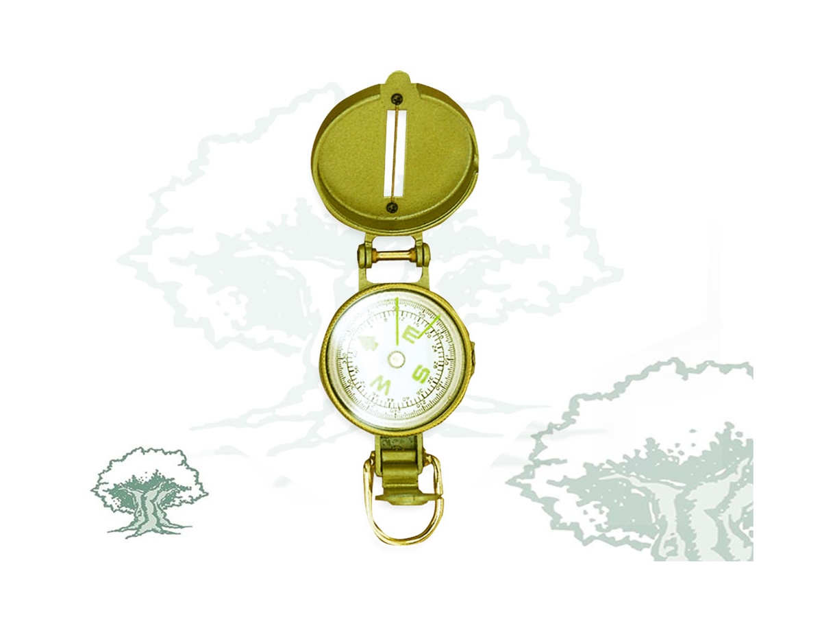 Brújula metálica de aceite con metal en dorado.