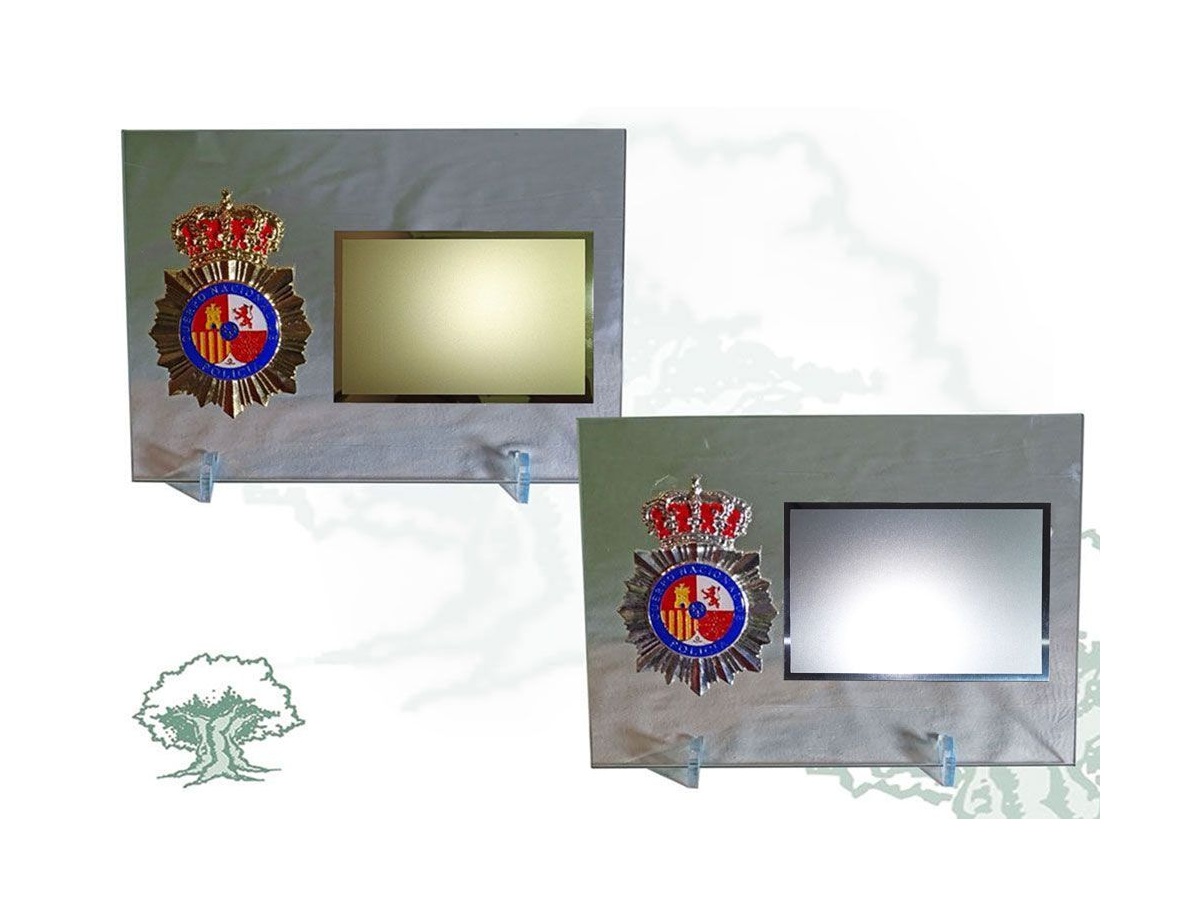 Placa Policía Nacional de cristal horizontal