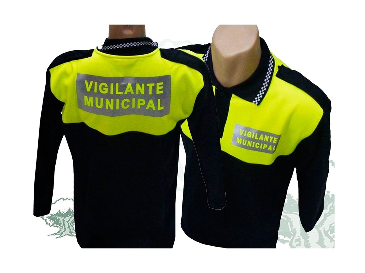 Polo Vigilante Municipal manga larga con damero en cuello