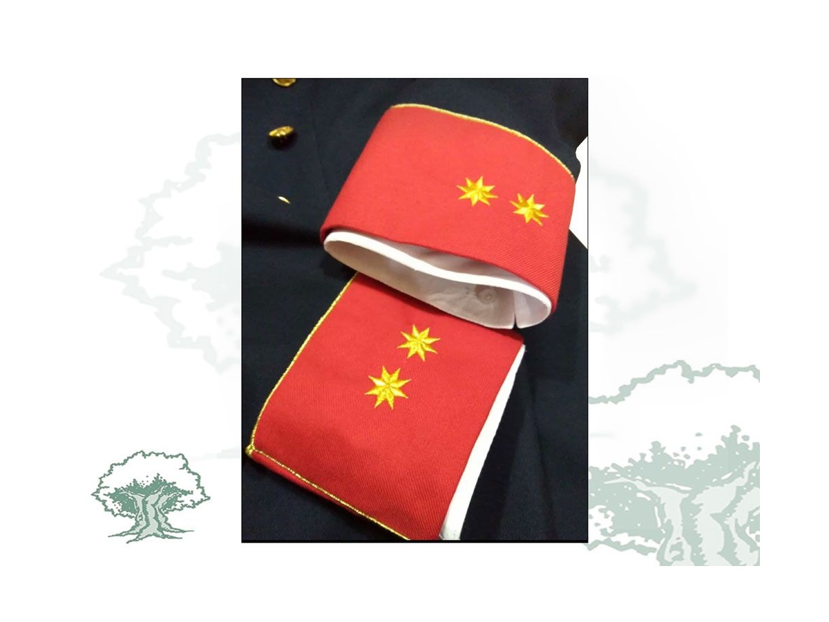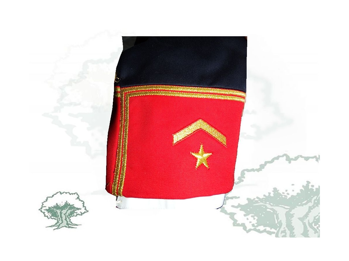 Incluye chaqueta, pantalón, hombreras y cordones en hilos de oro.