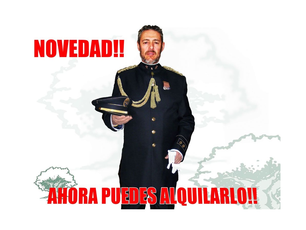 Incluye chaqueta, pantalón y hombreras en dorado.