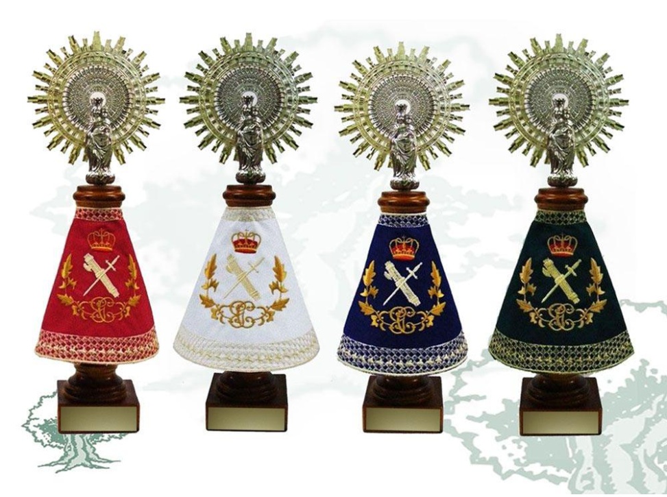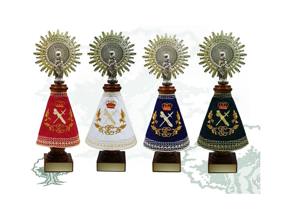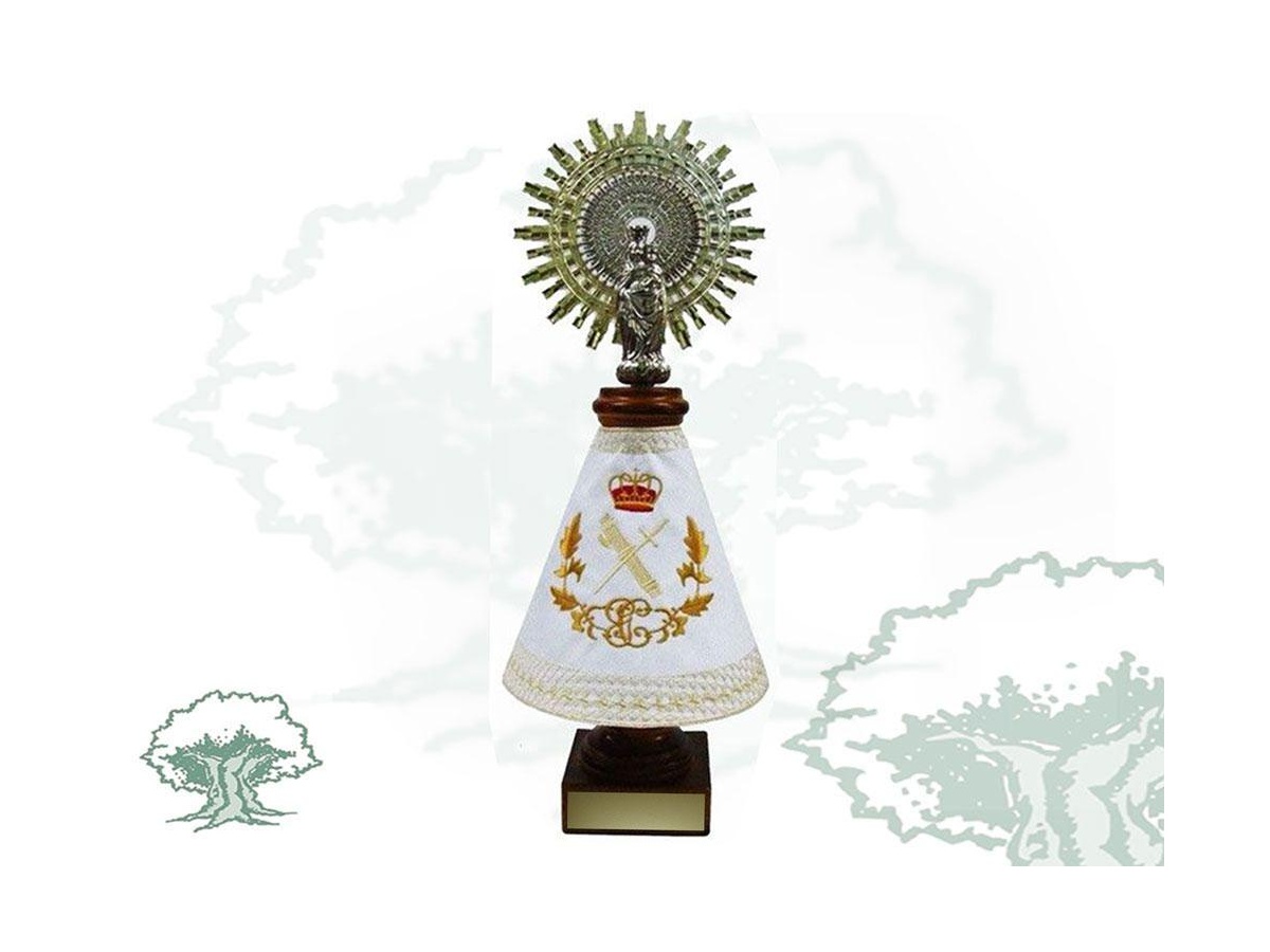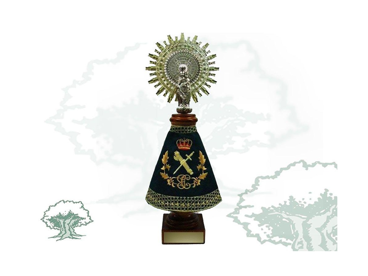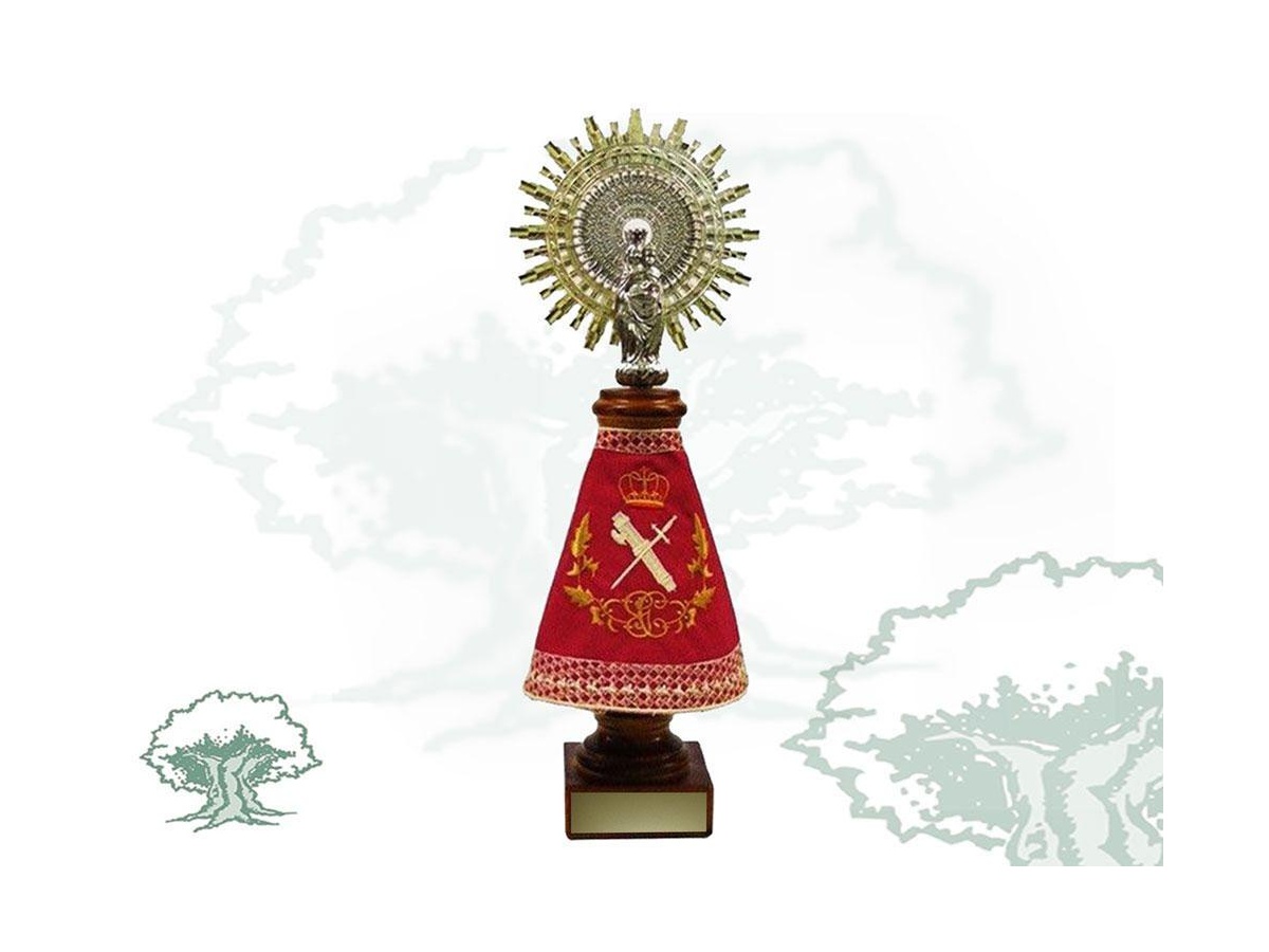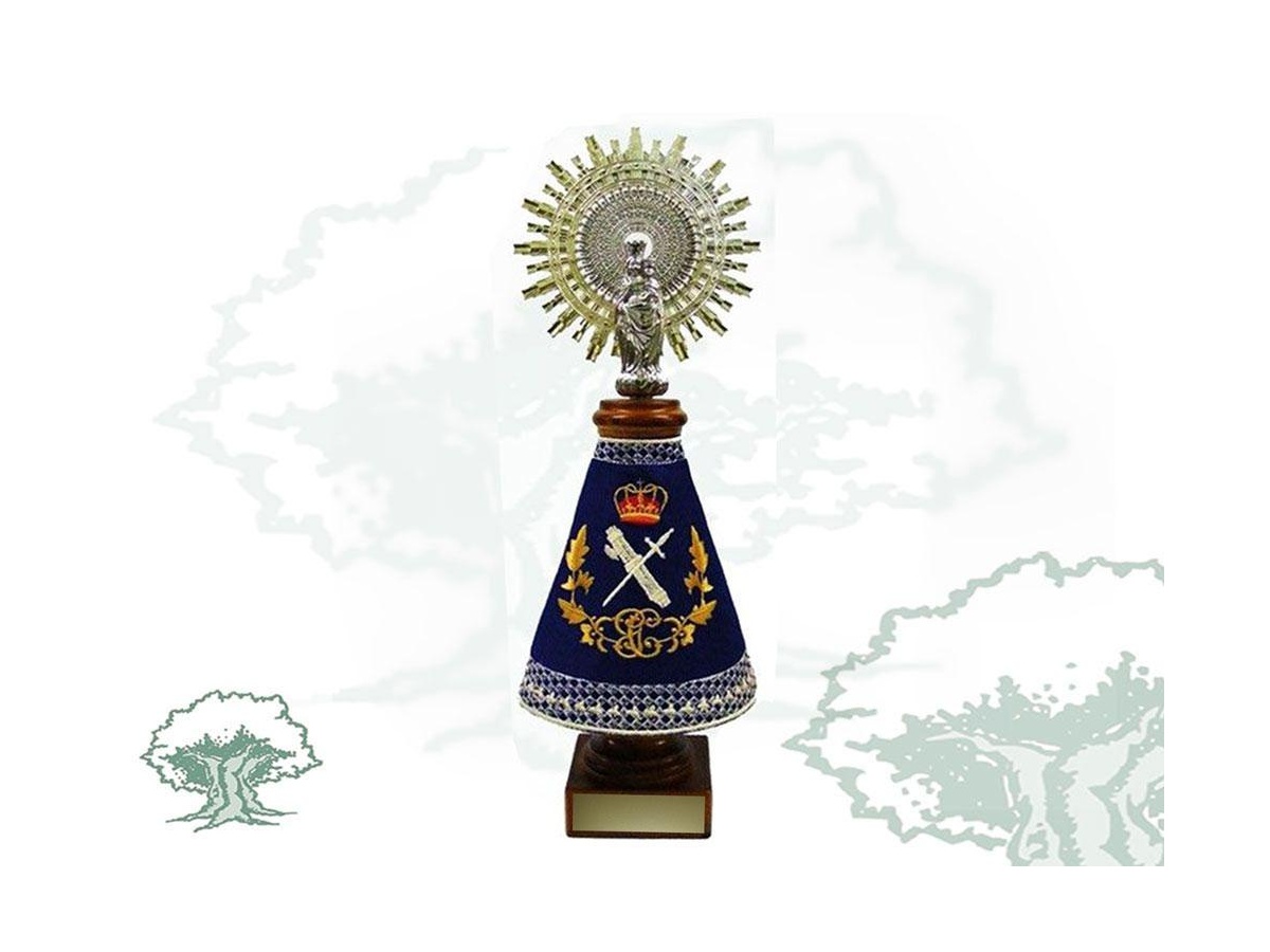 Figura Virgen del Pilar Guardia Civil peana marrón